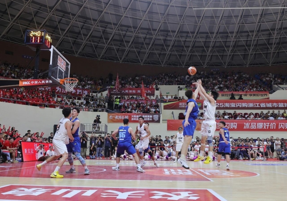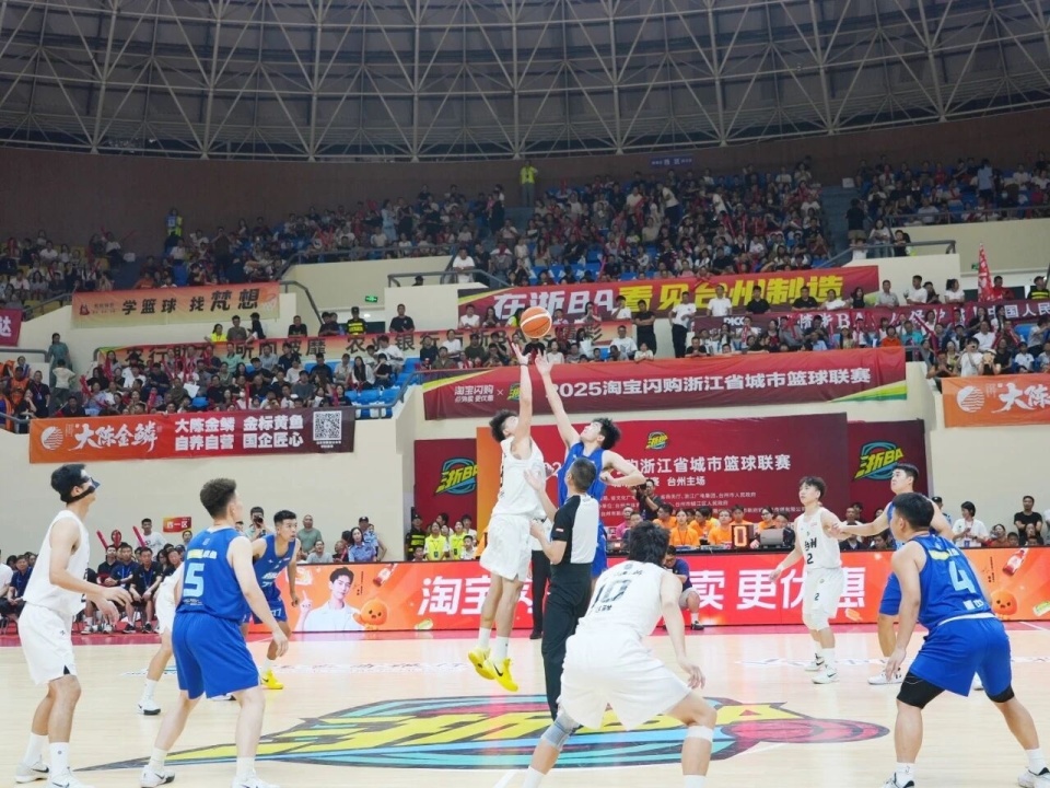 央广网台州9月5日消息(记者 项楠)9月5日晚,浙BA城市争霸赛迎来三场精彩对决,温州、台州、诸暨三队均捍卫主场荣耀,延续连胜势头。其中,台州队与舟山队的“海岛德比”战,以赛场竞技与地域温情交织的独特画风,成为当晚赛事亮点。